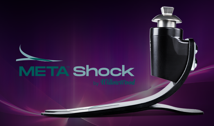 The META™ Shock by WillowWood is an adaptive carbon fiber prosthetic foot that features a unibody design, and an integrated shock absorbing proximal adapter. With no excess hardware or wraps, the foot offers a reduced weight and a high energy return.