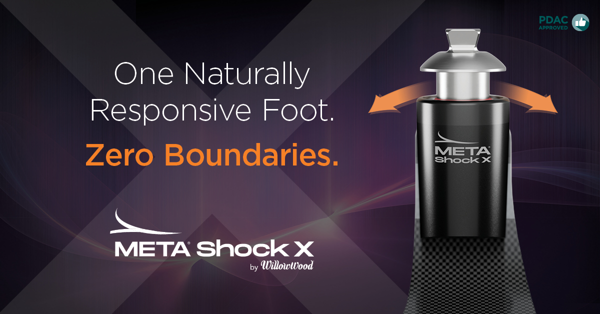 The newest addition to the WillowWood META® family, the META® Shock X. The META® Shock X features the same unibody design and low build height of its predecessors, plus 40° axial rotation in the ankle for increased range of motion, and functional mobility. This high activity foot adapts reflexively to variation when walking on uneven terrain and promotes natural rotational movement.