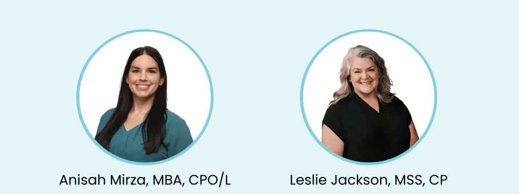 Leading our clinical education efforts are two dedicated Clinical Specialists, Anisah Mirza, MBA, CPO/L and Leslie Jackson, MSS, CP. With extensive experience and real world knowledge, they bring thoughtful perspective, hands-on guidance, and a deep understanding of clinical challenges to everything they do.